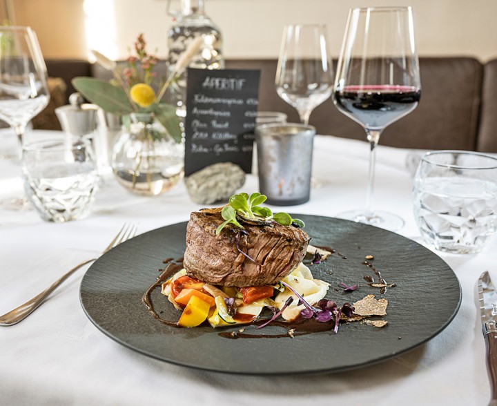 Abends verwöhnt Sie unser Küchenteam mit einem feinen 3-Gang-Menü oder den Einzelgerichten aus dem Restaurantmenü – regional, saisonal und ehrlich gut.