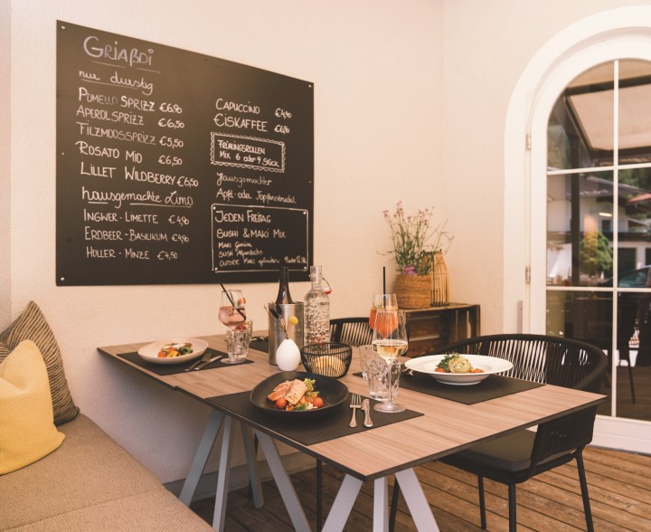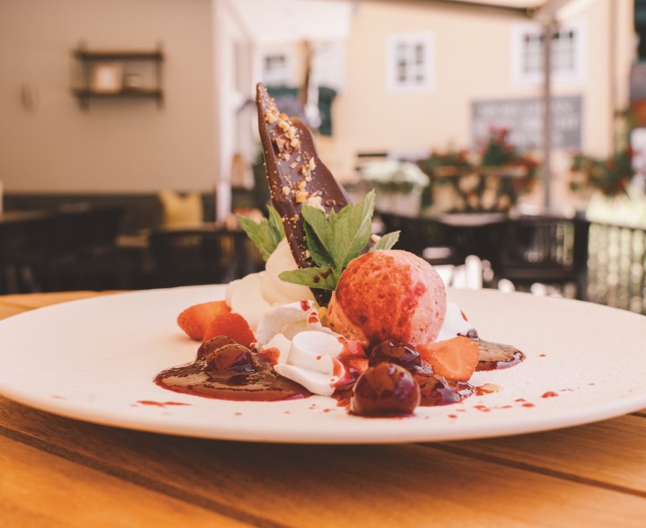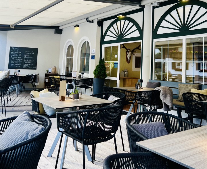 Hausgemachter Apfel- & Topfenstrudel, cremige Kaffeespezialitäten, Bottleservice auf der Sonnenterasse.